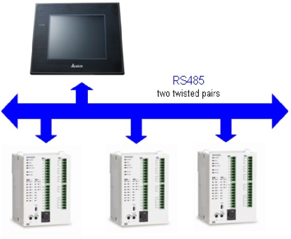 در انتهای هر دو سر شبکه RS-485 (یعنی در اولین و آخرین PLC در باس)، باید یک مقاومت ترمینیتور ( 120 اهم) متصل شود. این مقاومت ها برای جلوگیری از بازتاب سیگنال ها در خطوط طولانی و بهبود پایداری ارتباط مهم هستند. بسیاری از PLC های دلتا دارای سوئیچ های داخلی برای فعال سازی مقاومت ترمینیتور هستند. اطمینان حاصل کنید که این سوئیچ ها فقط در دو انتهای شبکه فعال شده اند.